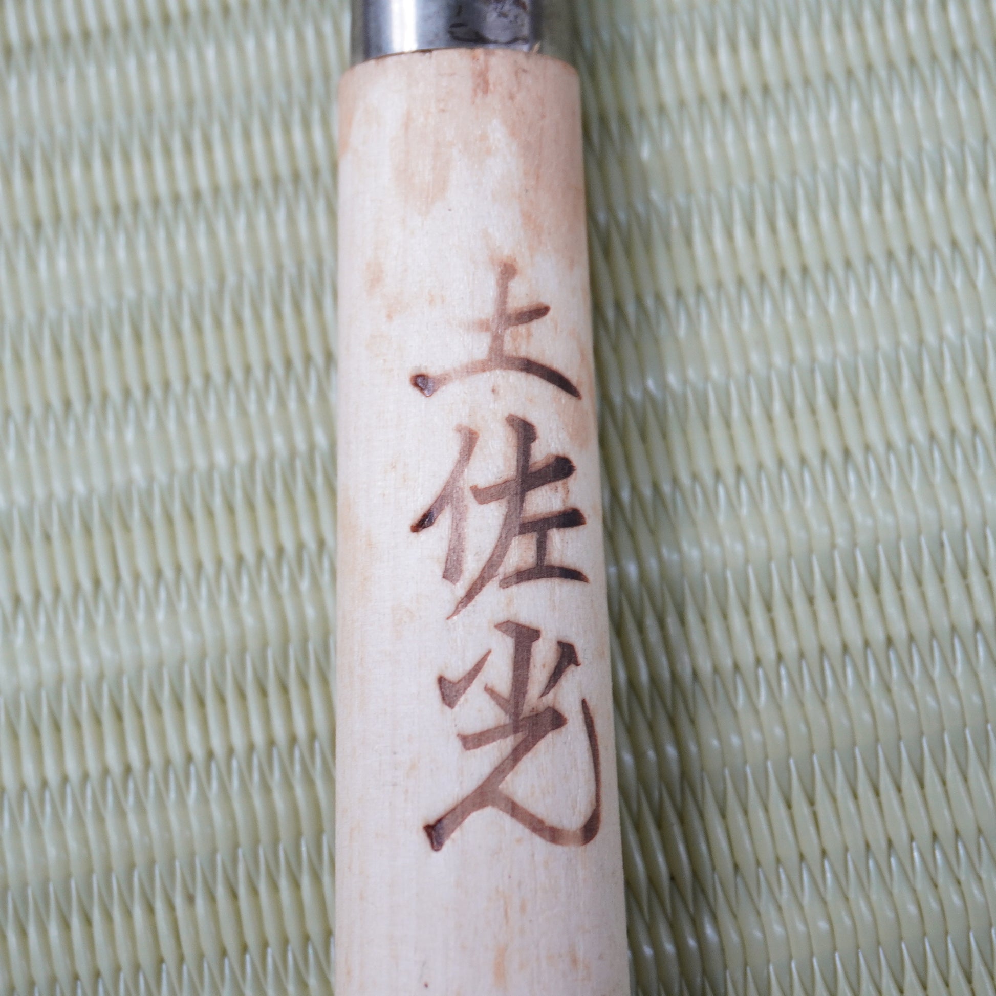 The blade is engraved with the maker’s name, a hallmark of authentic Japanese craftsmanship.