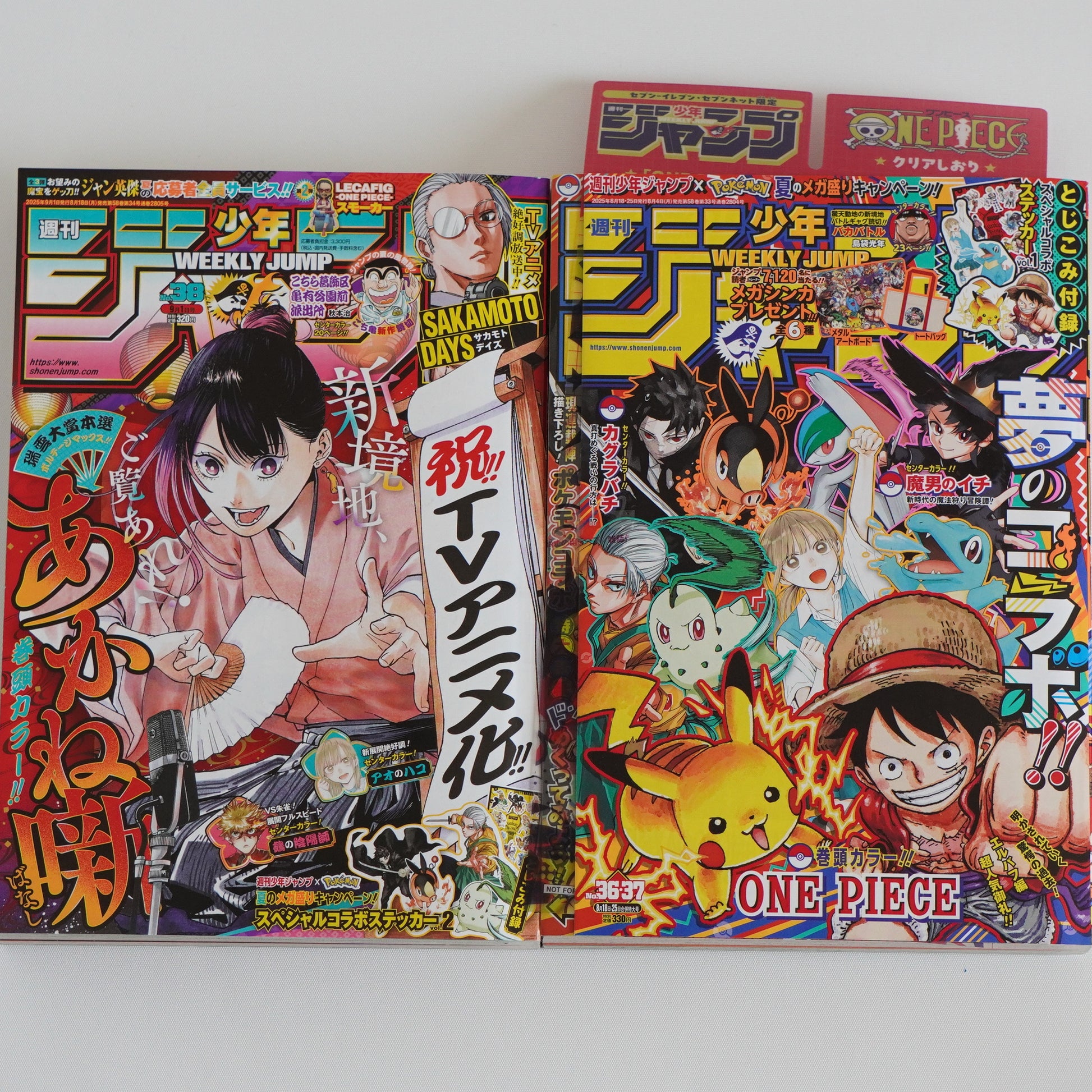 Weekly Shonen Jump 2025 #36-37 &38 Set w/ ONE PIECE Bookmark & Pokémon Stickers